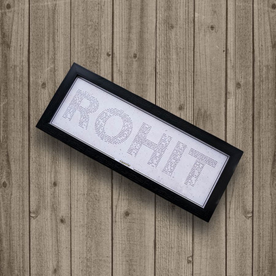 "The frame comes with the name and messages/story micro-written inside the name design.
