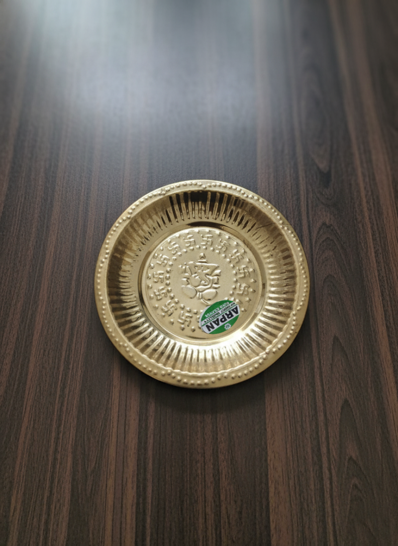 Enhance your pooja rituals with this Ganesh Brass Plate (15 CM Diameter), designed for home and temple use. Made from high-quality brass, this plate features a sacred depiction of Lord Ganesha, adding divinity and auspiciousness to your worship. Ideal for holding kumkum, haldi, rice, flowers, or other pooja offerings, it combines functionality with spiritual significance, making it a perfect addition to your pooja room or altar.