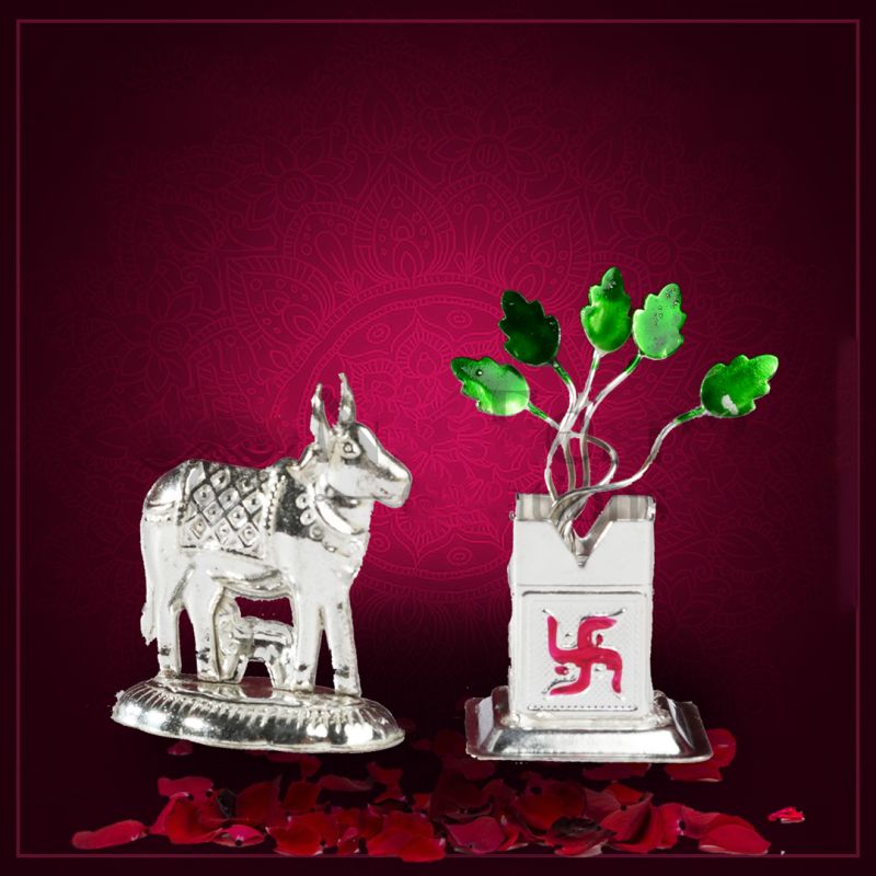 Celebrate devotion and tradition with this superbly hand made German Silver 2-Inch Tulsi Plant and 1-Inch Cow and Calf Set (Set of 10) – a perfect symbolic go back gift for religious activities. The sacred Tulsi plant represents purity and fine energy, while the Cow and Calf characterize nurturing, abundance, and divine safety.