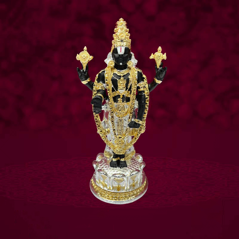 Bring divine presence and elegant craftsmanship to your sacred space with this exquisite 4‑inch 2‑tone Balaji Idol, beautifully rendered in German silver with both silver and gold highlights.