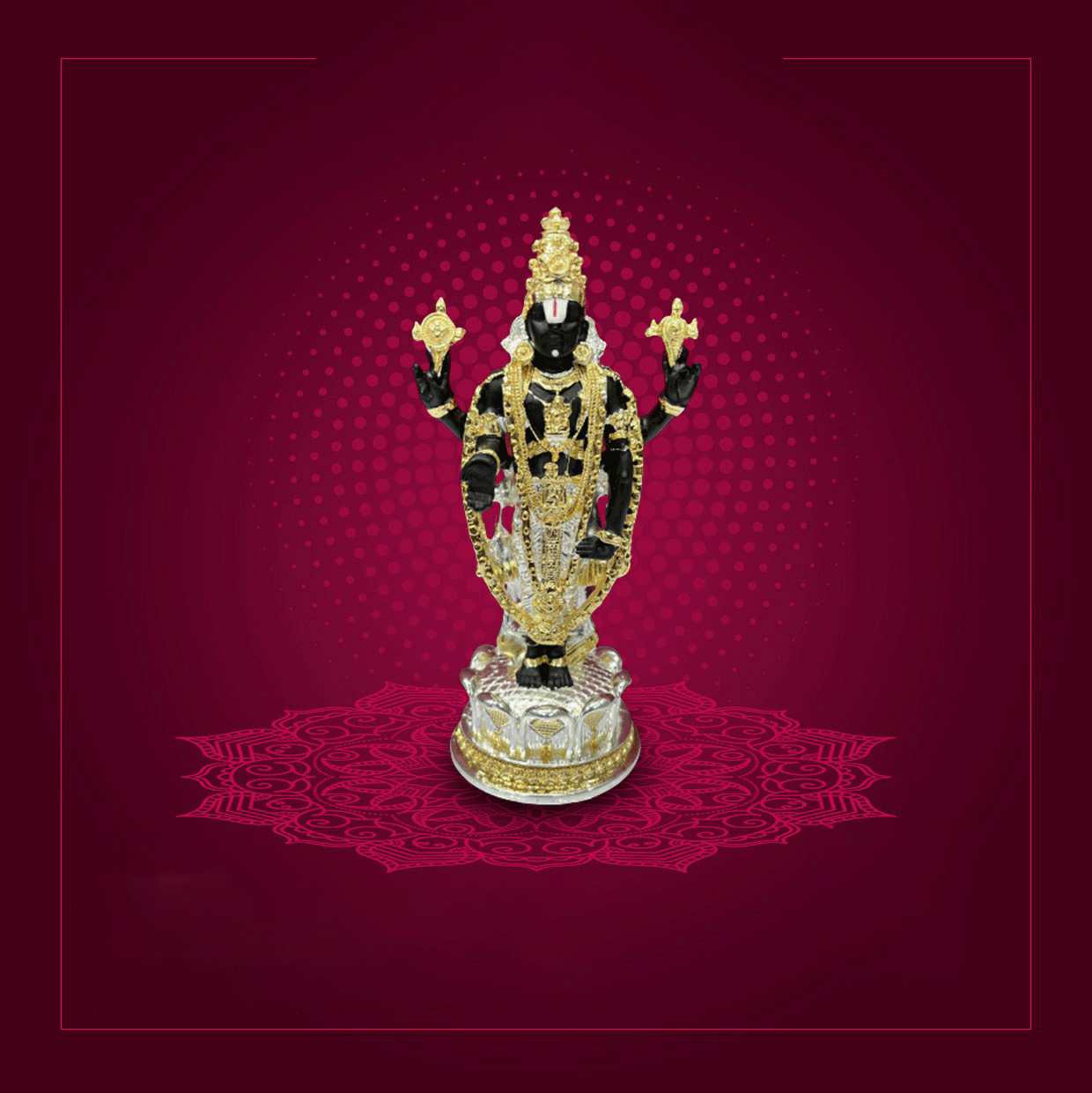 This 4-inch Balaji idol is a meticulously handcrafted piece made from high-quality German silver, showcasing intricate detailing and a polished finish. The deity is depicted in traditional attire, embodying the essence of divine protection and blessings. Weighing approximately 200–300 grams, this idol is ideal for placement in home temples, during pooja ceremonies, or as a thoughtful gift for festivals like Diwali, Varalakshmi Vratham, and weddings. Its compact size and elegant design make it a versatile addition to any spiritual setting. To maintain its shine, it is recommended to clean with a soft dry cloth and avoid exposure to moisture and harsh chemicals.