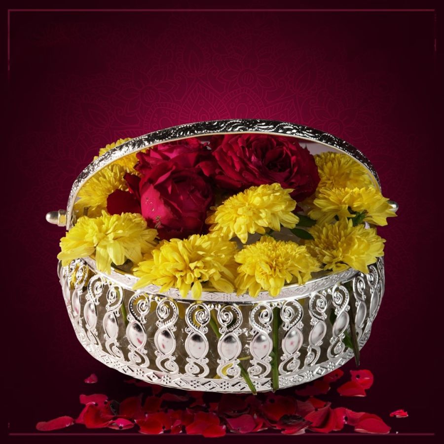 Whether used as a present tray, puja thali, or ornamental centerpiece, this little and sophisticated item elevates any area. Its timeless beauty and tarnish qualities make it a valued enhancement to day-to-day rituals, wedding events, and celebrations."