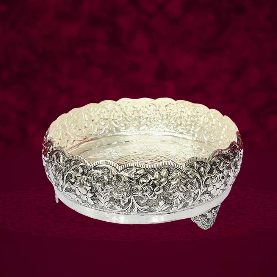 Enhance your pooja rituals and festive décor with this elegant 8‑inch Antique Plate crafted from premium German silver. Combining traditional artistry with durable craftsmanship, this plate is a perfect addition to any sacred space.