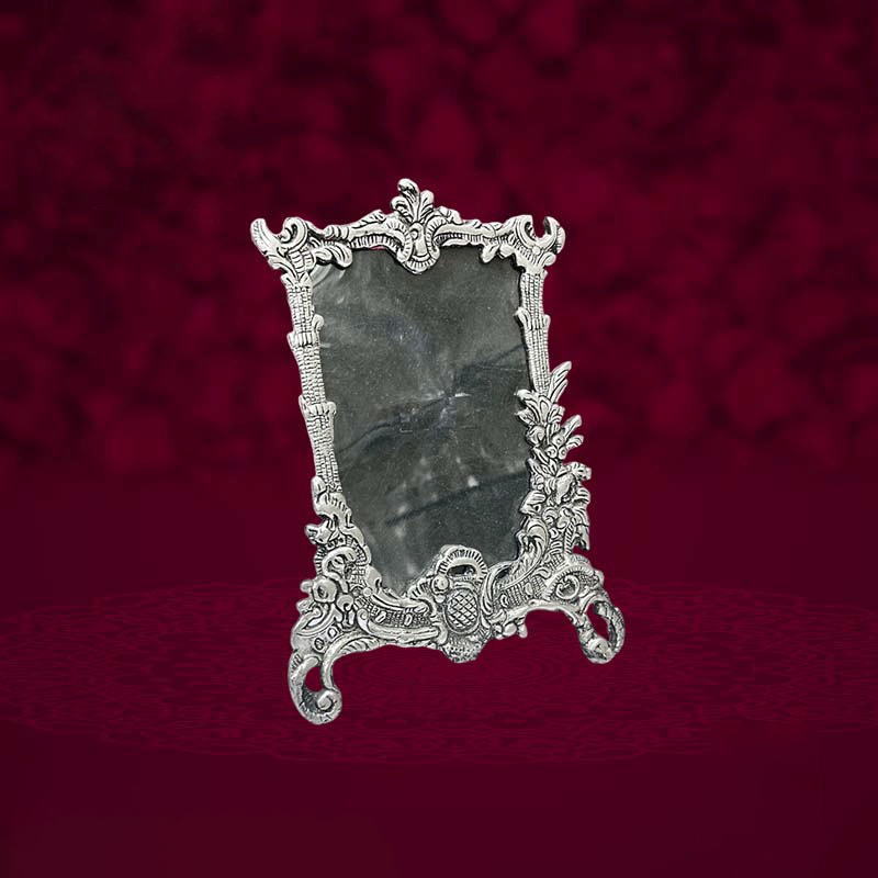 This Antique German Silver Photo Frame showcases traditional craftsmanship and timeless elegance. Handcrafted with intricate carvings, it features a polished German silver finish that adds a sophisticated touch to any space. Ideal for displaying cherished photographs of deities, family, or special occasions, this frame serves as both a decorative piece and a meaningful keepsake. Its classic design makes it suitable for home décor, pooja rooms, or as a thoughtful gift for weddings, housewarmings, or festive celebrations.