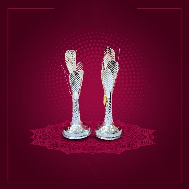 Elevate the sanctity and elegance of your pooja room or home décor with this 10‑inch German Silver Banana Trees CP decorative set. This artistic set features a pair of stylized banana tree idols designed to add auspicious charm and timeless grace to your sacred space.