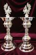 This is likely a German Silver Kumkum / Pooja Container — a small ritual vessel (barani / bharani) made from nickel-silver alloy (copper, nickel, zinc). It is designed for pooja use, ideal for holding kumkum (vermilion), haldi, or other pooja powders. The metallic finish gives it a silver-like gleam, yet it remains more affordable than pure silver. The design is probably compact and functional, yet decorative enough to fit beautifully on a pooja thali or altar.