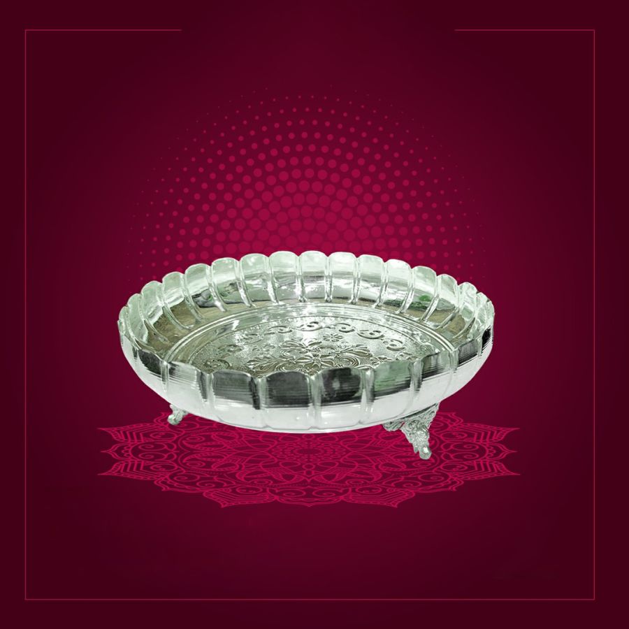 Grace your rituals and décor with the divine elegance of the German Silver Lotus Plate – 10 Inch, artistically designed inside the shape of a blooming lotus. Crafted from extremely good German Silver, this plate is good for pooja setups, diya preparations, prasadam services, or festive décor