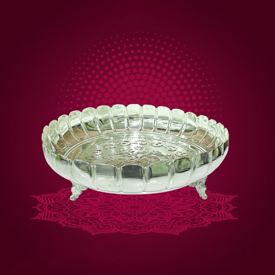 German Silver Lotus Plate – 8 Inch Compact & Elegant Pooja Plate