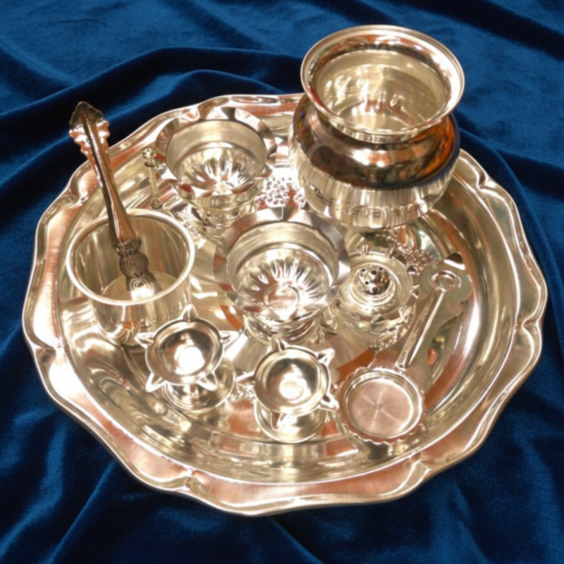 This product is likely a German Silver pooja vessel or container — probably a kumkum / pooja barani or a small decorative bowl — made from a nickel-silver alloy (copper, nickel, zinc). The piece is designed for ritual use in Hindu pooja ceremonies, where it can hold kumkum, rice, water, flowers, or prasadam. Its metal construction gives it a bright, silver-like appearance, while being much more affordable than real silver. The design is expected to be traditional yet functional, making it a tasteful addition to your pooja thali or altar.