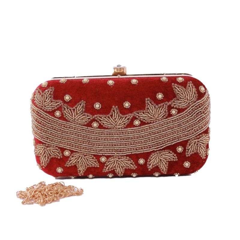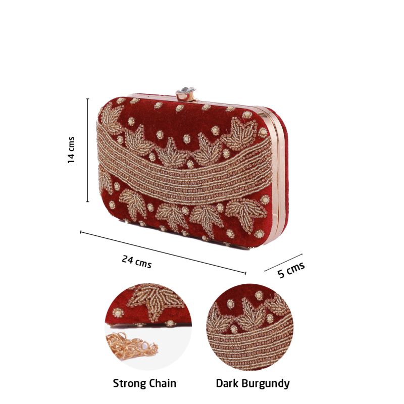 A golden embroidered Dark Burgundy wedding clutch bag is the epitome of elegance and luxury, perfect for weddings, festive occasions, and grand evening events. The deep Burgundy hue symbolizes sophistication, while the gold embroidery adds a touch of regal opulence.Whether you're a bride, bridesmaid, or wedding guest, this clutch bag is the perfect accessory to complement ethnic and Western outfits.