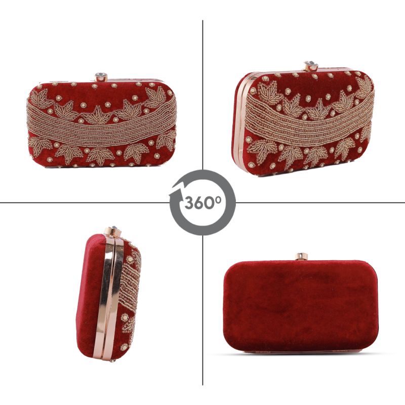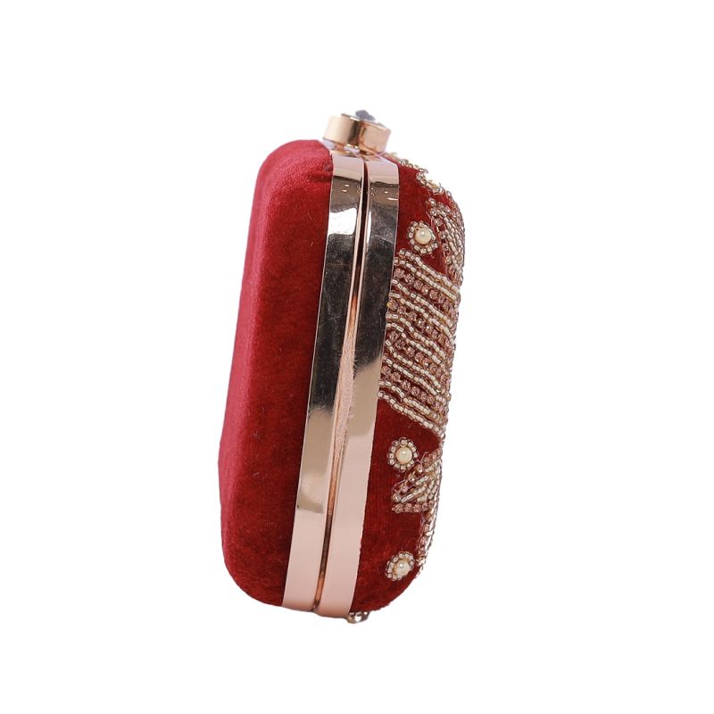 Golden Embroidered Dark Burgundy Wedding Clutch Bag for Women