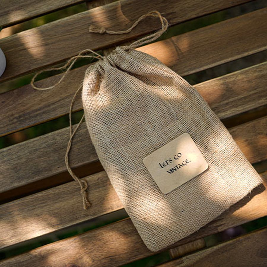 Gunny bag full of vintage goodies adorned in a presentable jute bag.