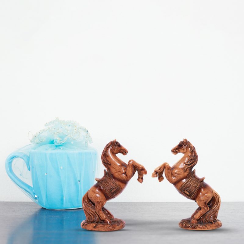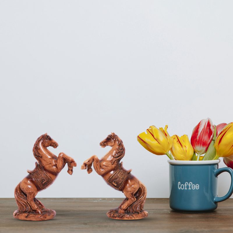 Horse Rearing Stallion Statue Set of 2 for Cabinet Showpiece