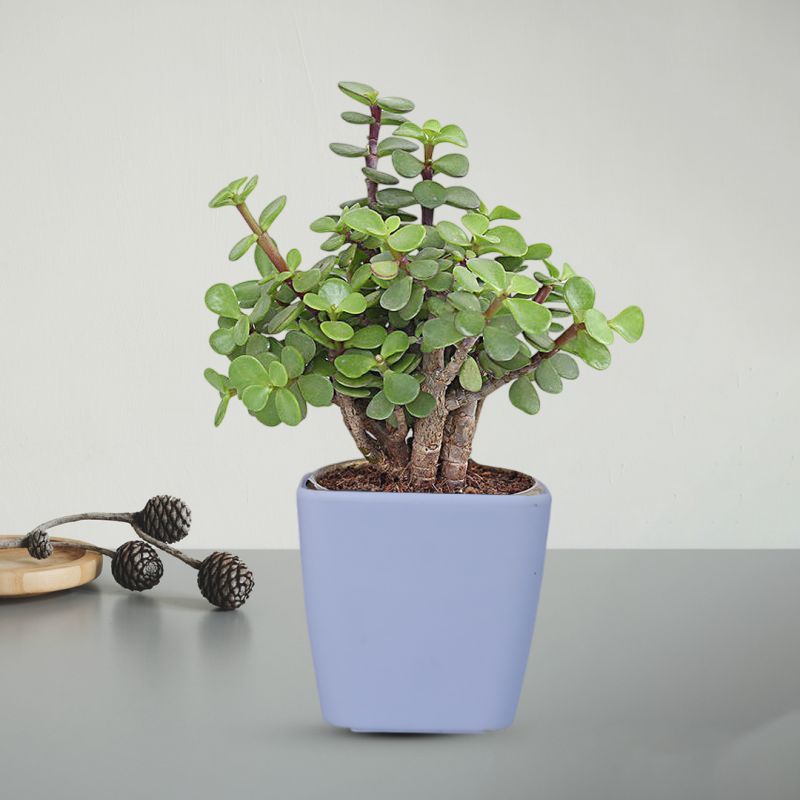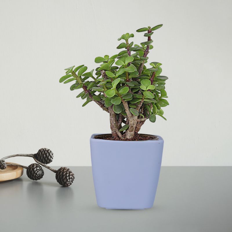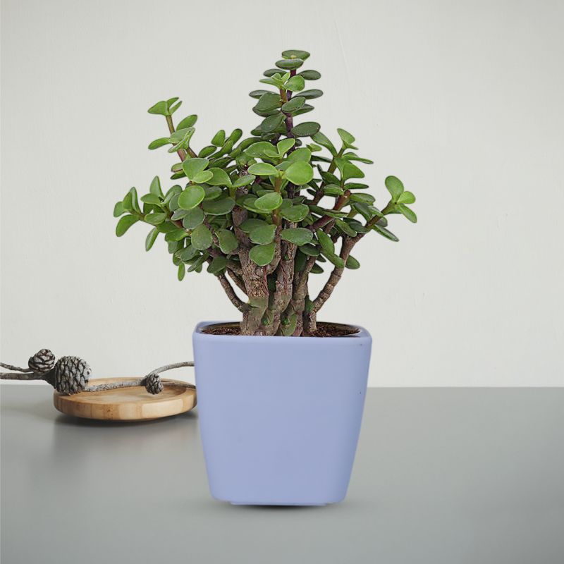 Bring natural charm and positive energy into your space with this beautiful Jade Plant nestled in a sleek, modern white ceramic pot. Known for its thick, glossy green leaves and easy care, the Jade Plant (Crassula ovata) is a symbol of prosperity and good luck, making it a perfect addition to your living room, office desk, bedroom, or entryway.