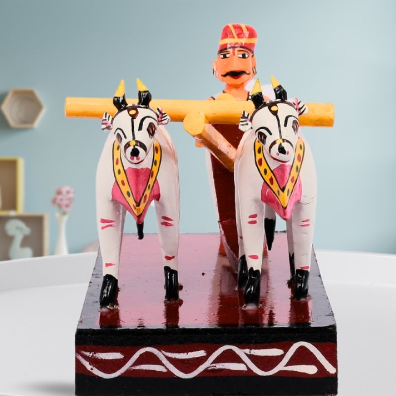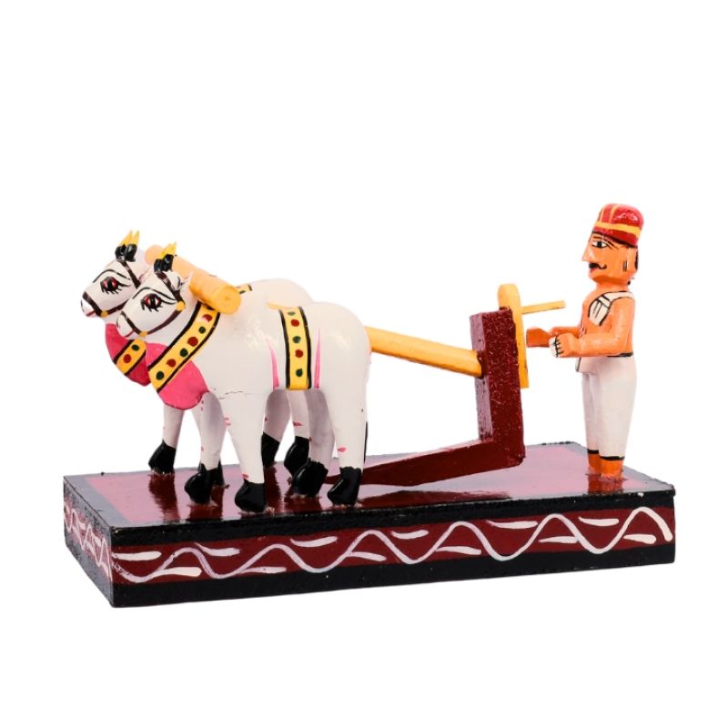 Kondapalli Bommalu Farmer Farming with Bulls Toy for Home Decor