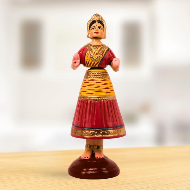 Kondapalli Wooden Butta Bomma Dancing Doll Showpiece for Home Decor (Yellow Red) Colour