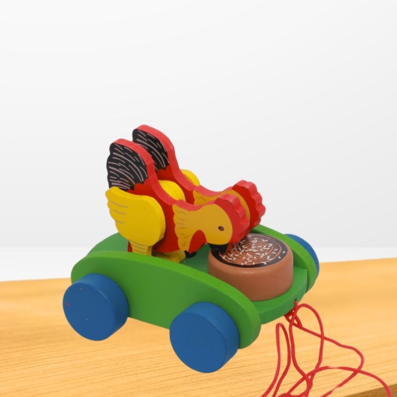 Kondapalli Wooden Chicken Drum Cart for Baby Early Walking Rope Toy for Babies