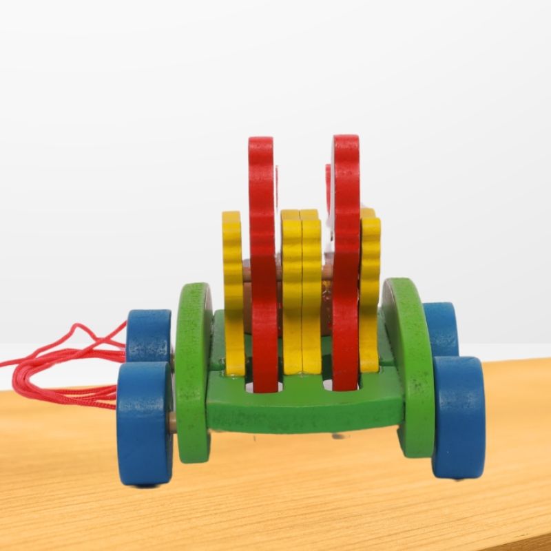 Encourage your baby’s first steps with this charming Kondapalli Wooden Chicken Drum Cart, a traditional handcrafted toy designed to support early walking and sensory development. Made by skilled artisans from Kondapalli village, Andhra Pradesh, this pull-along toy combines vibrant colors, delightful sounds, and safe design to engage and entertain your little one.
