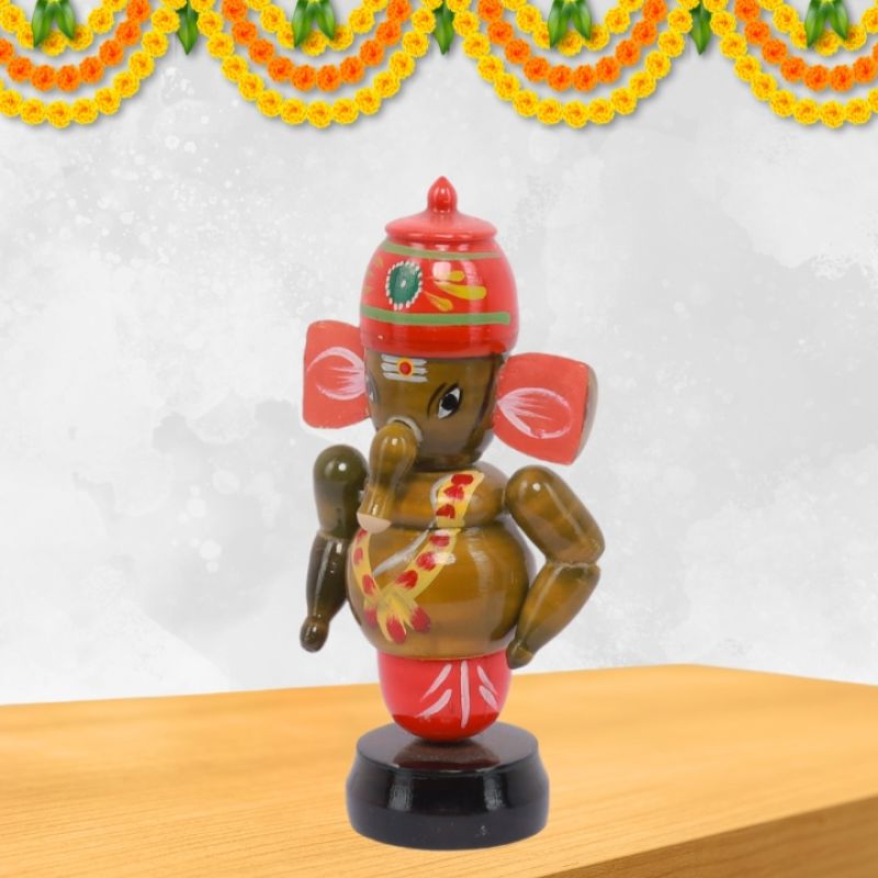Kondapalli Wooden Ganesha Idol for Car Dashboard and Home Decorative Showpiece