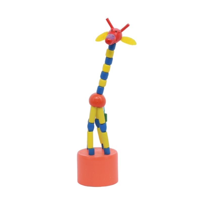Delight your child with this vibrant Kondapalli Wooden Giraffe Multicolor Toy, handcrafted by skilled artisans from Kondapalli village, Andhra Pradesh. This beautifully painted wooden giraffe combines playful colors and traditional craftsmanship, making it a perfect toy for kids and a charming decorative piece.