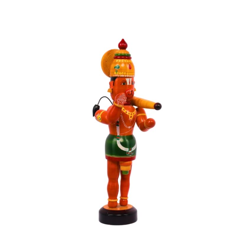 Bring strength, courage, and devotion into your living space with this beautifully handcrafted Kondapalli Wooden Hanuman Standing Idol. Created by skilled artisans from Kondapalli village, Andhra Pradesh, this vibrant showpiece captures the powerful and benevolent form of Lord Hanuman, the symbol of unwavering devotion and protection.