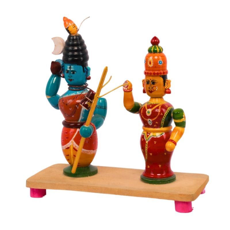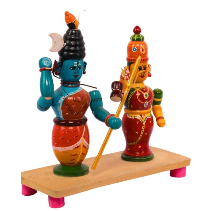 Invite divine blessings and spiritual harmony into your home with this beautifully handcrafted Kondapalli Wooden Lord Shiva and Parvathi Devi Idols. Skillfully made by artisans from Kondapalli village, Andhra Pradesh, this exquisite set captures the serene and powerful presence of Lord Shiva and Goddess Parvathi, showcasing intricate craftsmanship and vibrant traditional colors.