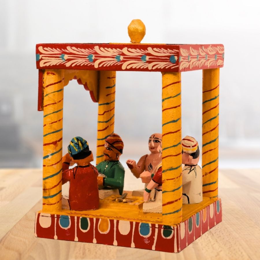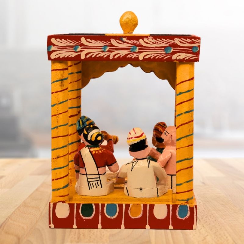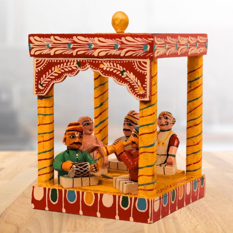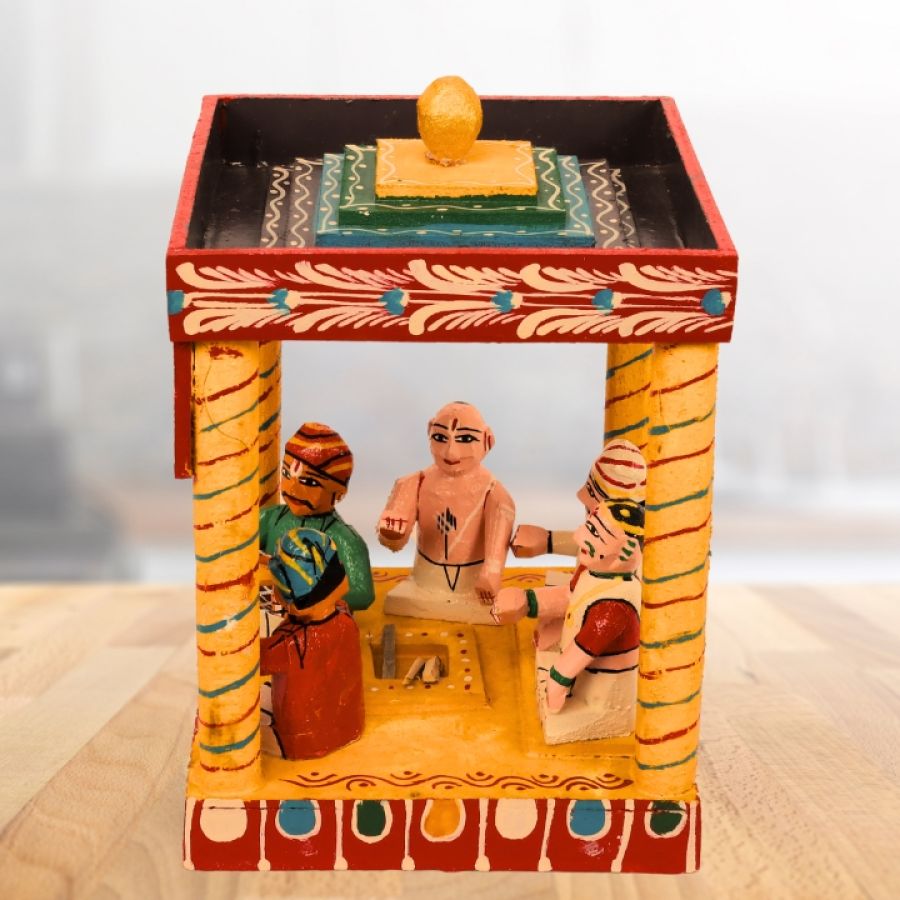 Kondapalli Wooden Pellimandapam with Bride and Groom Decorative Showpiece (Marriage Set)