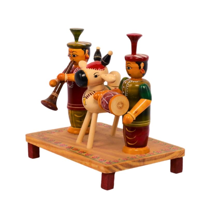 Kondapalli Wooden Sankranthi Gangireddhu Melam Showpiece Set for Home Decor