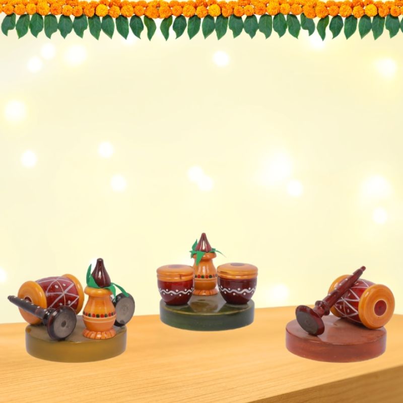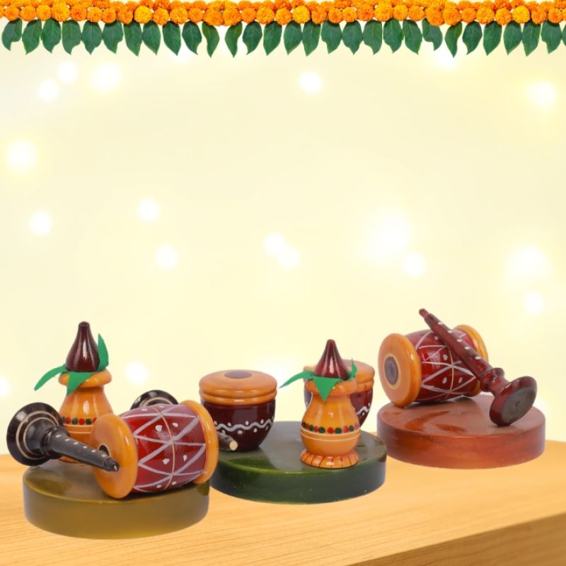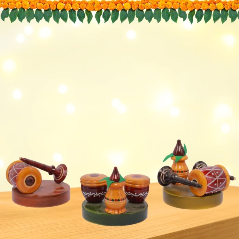 Kondapalli Wooden Sannai Pelli Melam Musical Set for Home Decorative Showpiece