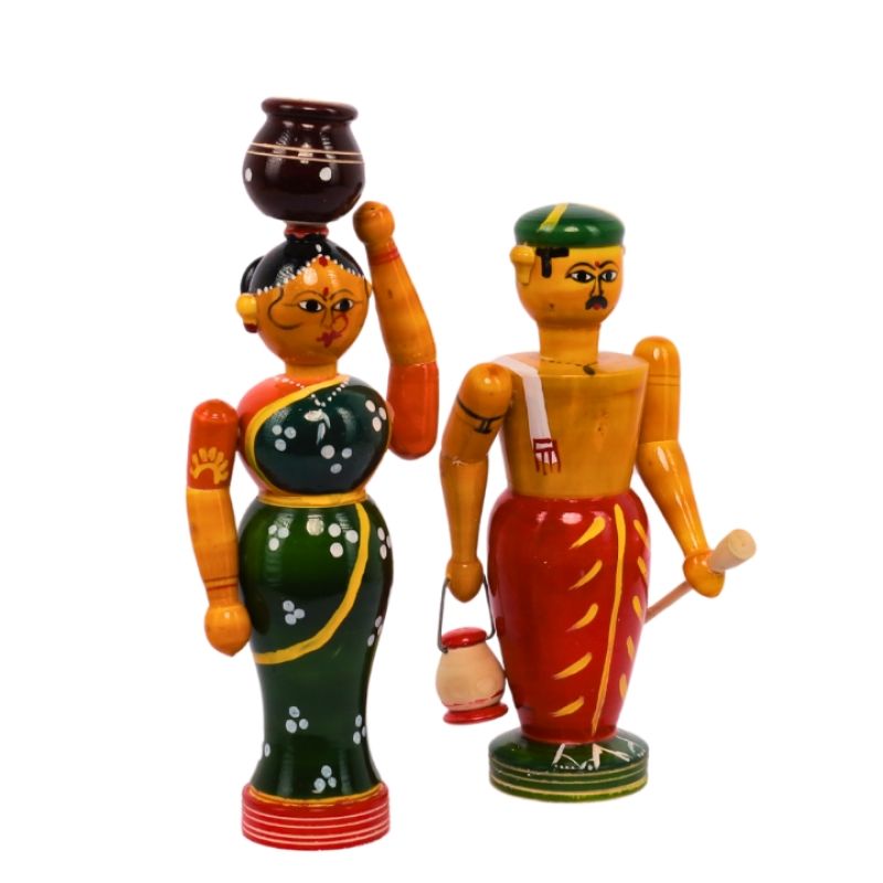 Kondapalli Wooden Village Farmer couple Idol for Home Decor