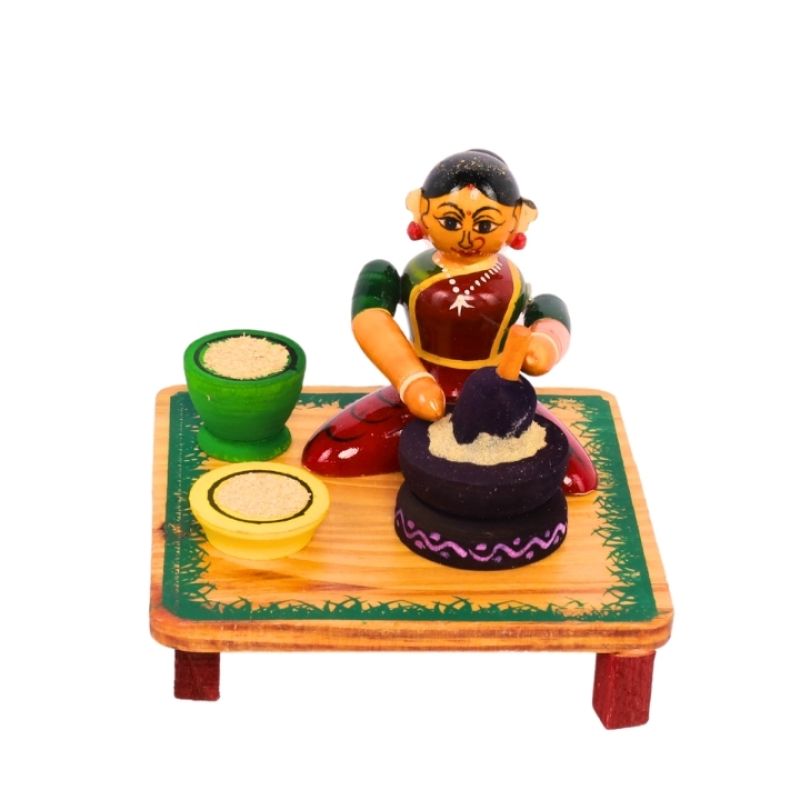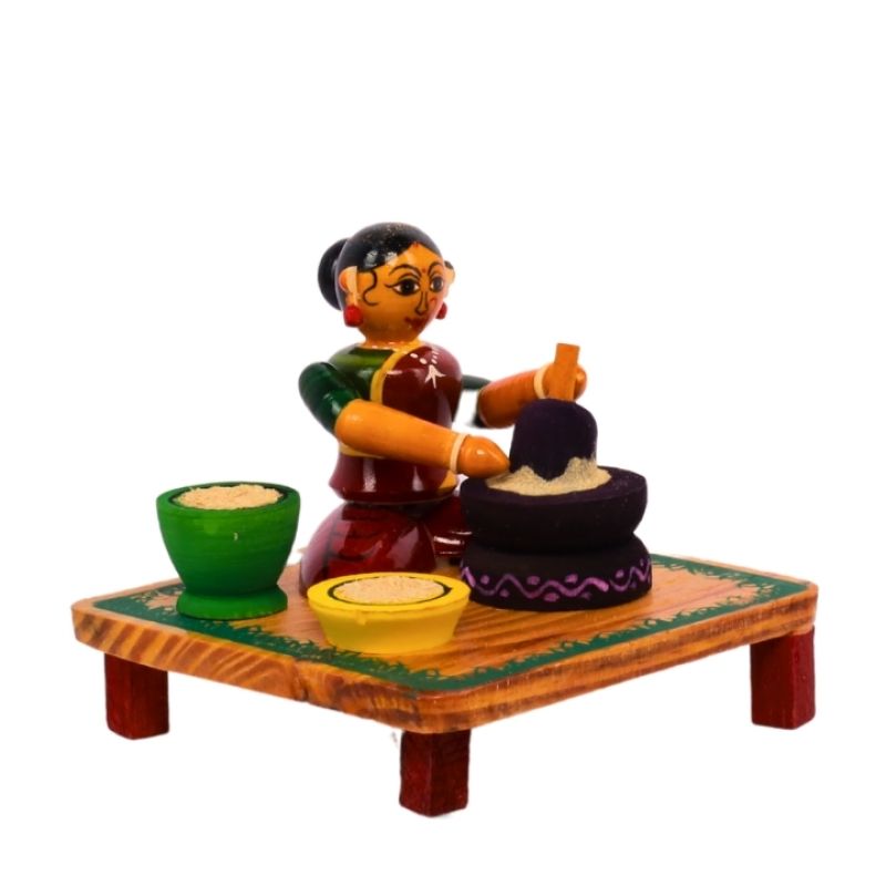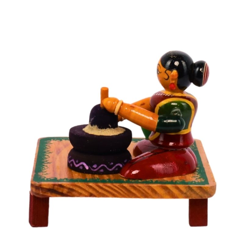 Kondapalli Wooden Village Grinding Lady Idol for Home Decor