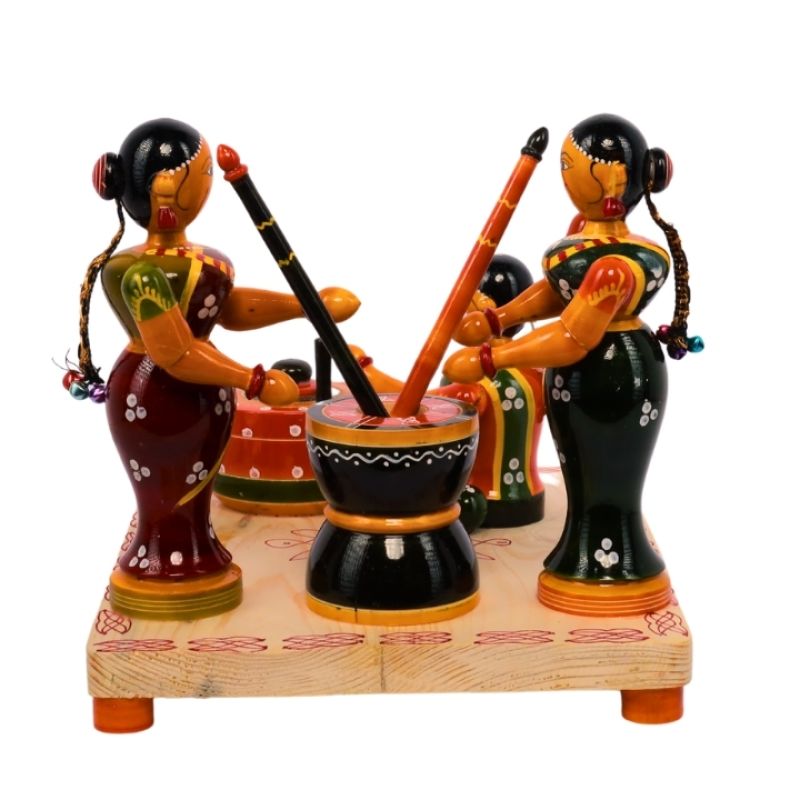 Kondapalli Wooden Village Ladies Pounding Grinding Set for Home Decor