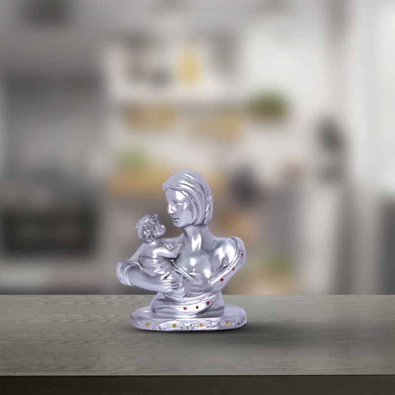 Mother and Child Statue in Silver Colour Showpiece for Mother's Day Gift and Home Décor (Small Size)