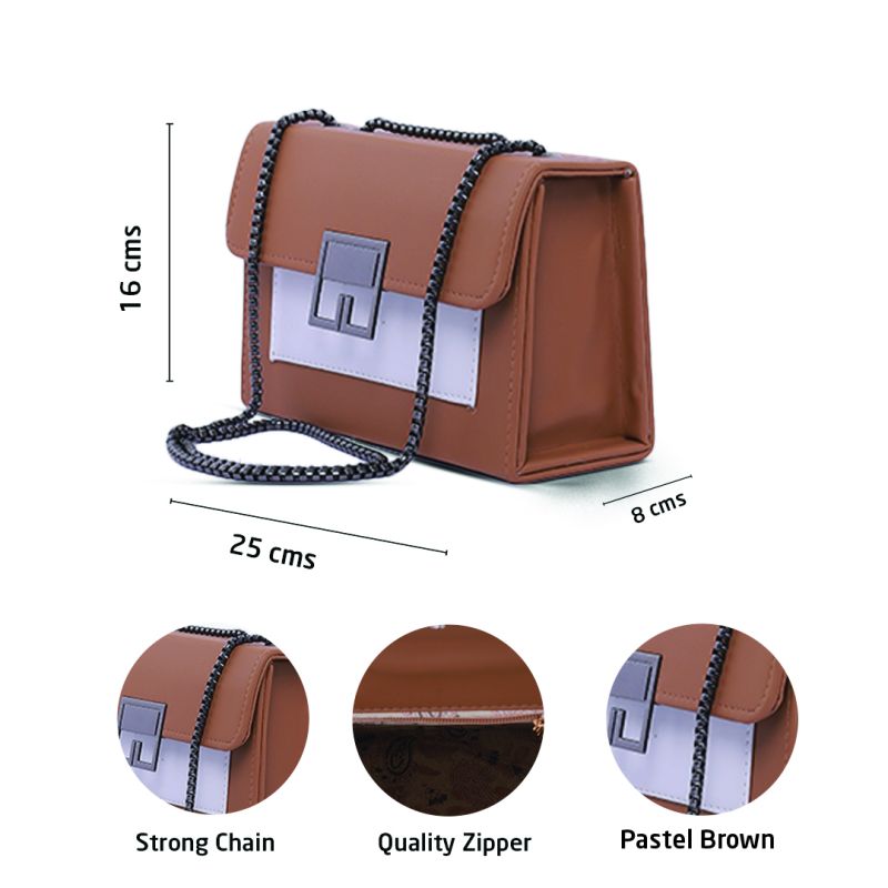 New Stylish Pastel Brown Sholder Sling Bag with Long Chain For Girls and Women