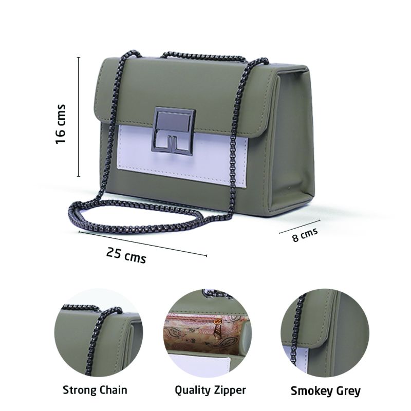 New Stylish Smokey Grey Sholder Sling Bag with Long Chain For Girls and Women