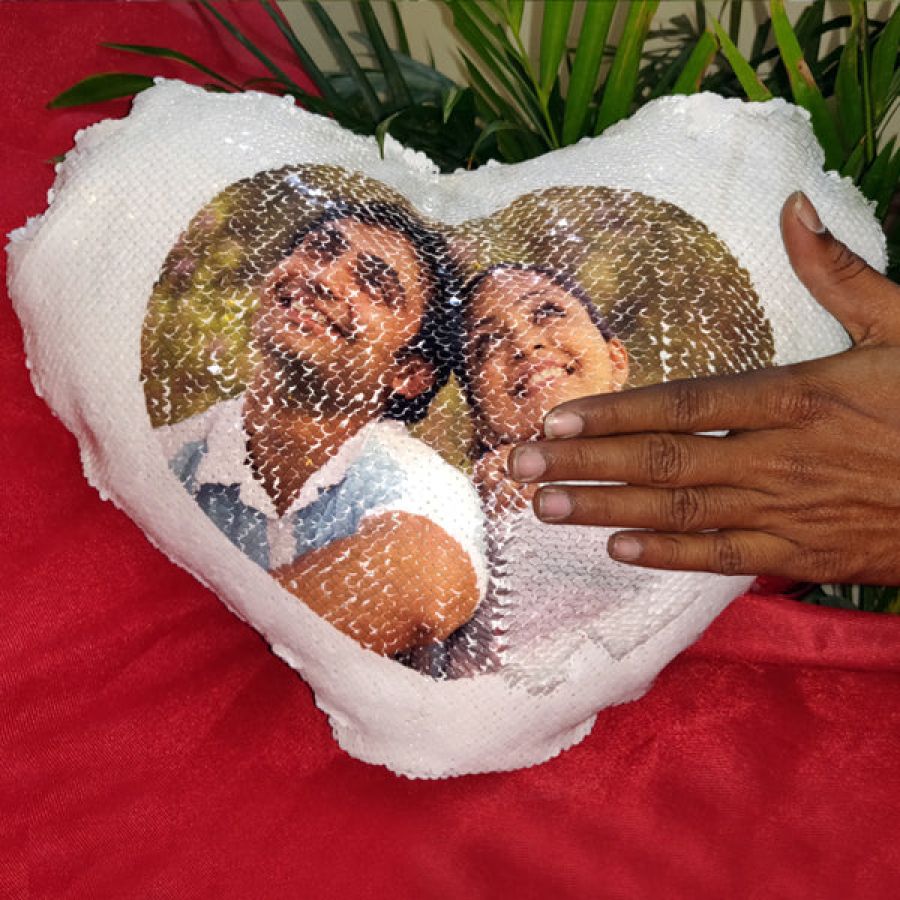 Personalised Heart Shaped 3 Sides Printing Magic Photo Pillow Gift for all Occations (White Colour)