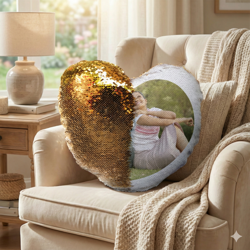 This magic sequin pillow features a layer of reversible sequins that magically hide or reveal a custom image beneath. When you brush the sequins one way, they display a solid color; swiping the other way flips them to show your personalized photo or design. The base of the pillow is made of soft polyester, giving it a smooth yet supportive feel. More than just a cushion, it serves as a decorative keepsake — perfect for placing on sofas, beds, or anywhere you want a bit of flair and personalization. You can upload any image of your choice, which gets printed underneath the sequin layer, creating a captivating “reveal” effect every time the sequins are moved.