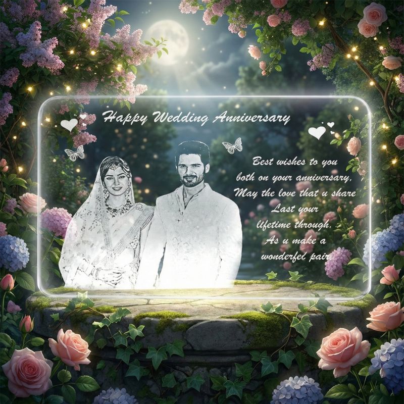 "Display your cherished memories with a modern, luminous touch using this LED Acrylic Photo Frame. This elegant, transparent-acrylic frame transforms ordinary photos into glowing keepsakes, perfect for gifting or home décor. Placed on a tabletop or against a dark background, the engraved acrylic surface shines under LED light, making photos and messages stand out with clarity and style.