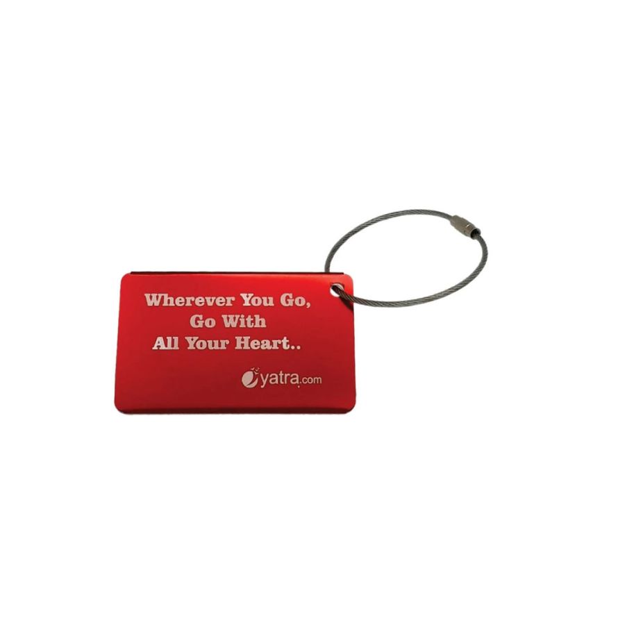 Personalised Metal Travel Bag Tag in Red Colour with Adventure Begins quotation