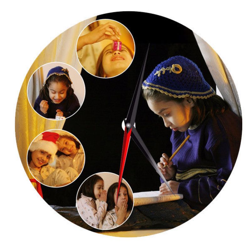 The entire clock face becomes your canvas—perfect for family photos, couple pictures, special memories, or customized artwork. The minimalist design features small star motifs instead of standard numbers, giving it a modern and elegant appeal.