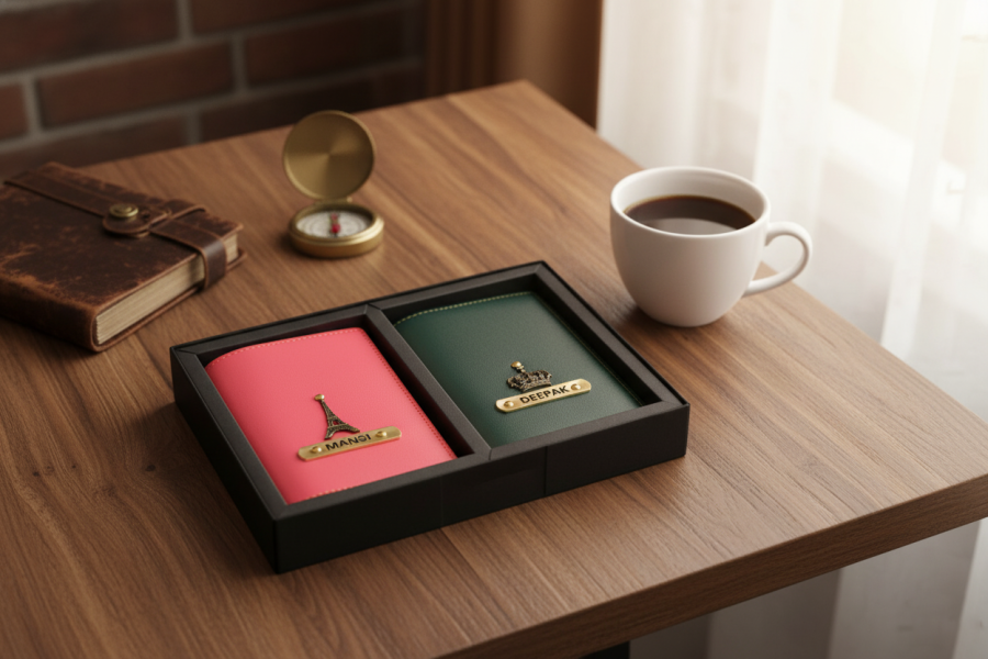 The Personalised Couple Passport Covers are designed to add a touch of elegance and personalization to your travel accessories. Crafted from high-quality vegan leather, these passport covers are both stylish and functional. They can be customized with your names and a charm, making them perfect for couples who want to travel in style.