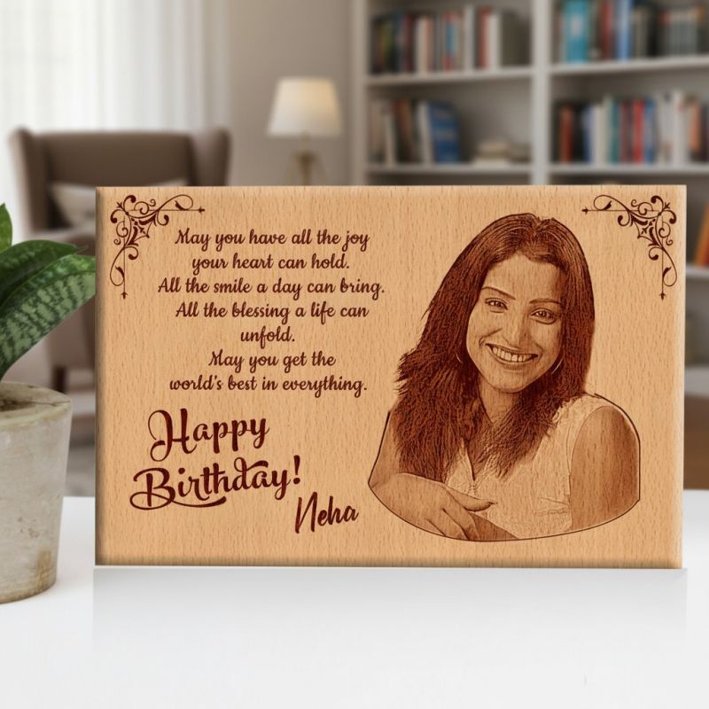 Personalized Happy Birthday Wooden Photo Frame with Custom Engraving