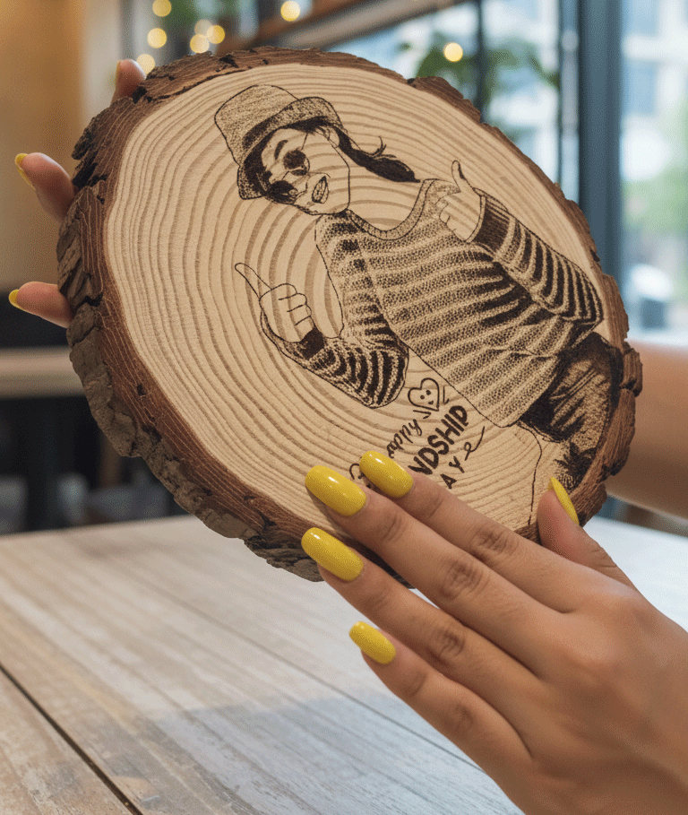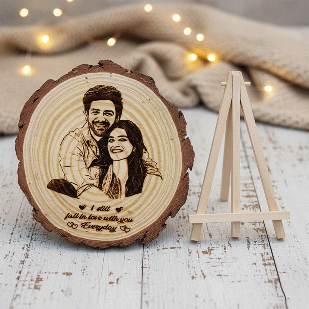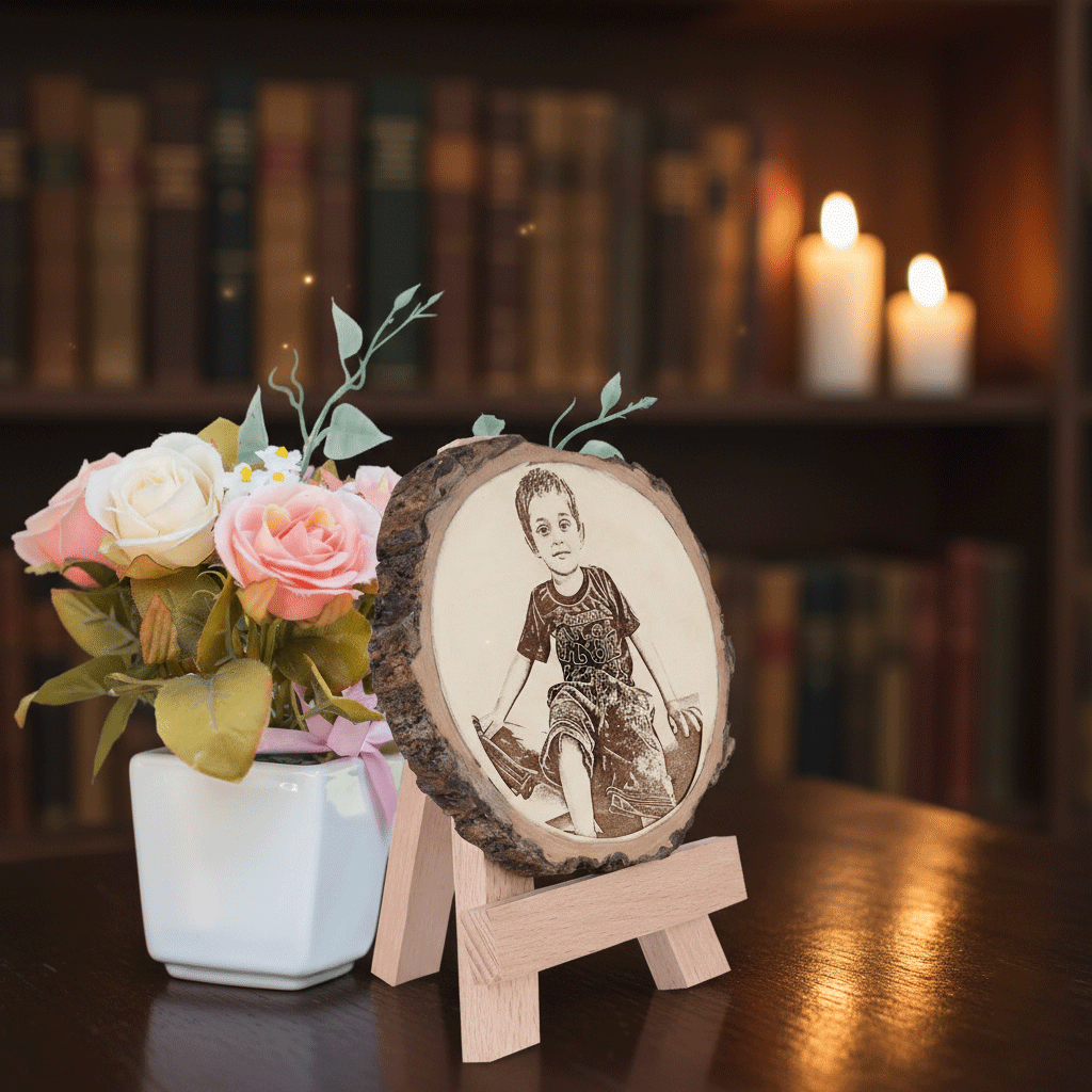 Capture a special moment in timeless style with this Happy Birthday Wooden Slice Engraved Photo Frame. Made from a natural wood slice, this frame features laser engraving of your chosen photo alongside a “Happy Birthday” message (or your custom text). The rustic charm of wood combined with precise engraving creates a keepsake that’s both personal and artistic. Available in sizes ranging from 4 to 8 inches, this elegant frame becomes a standout décor piece—ideal for gifting or celebrating a birthday memorably.