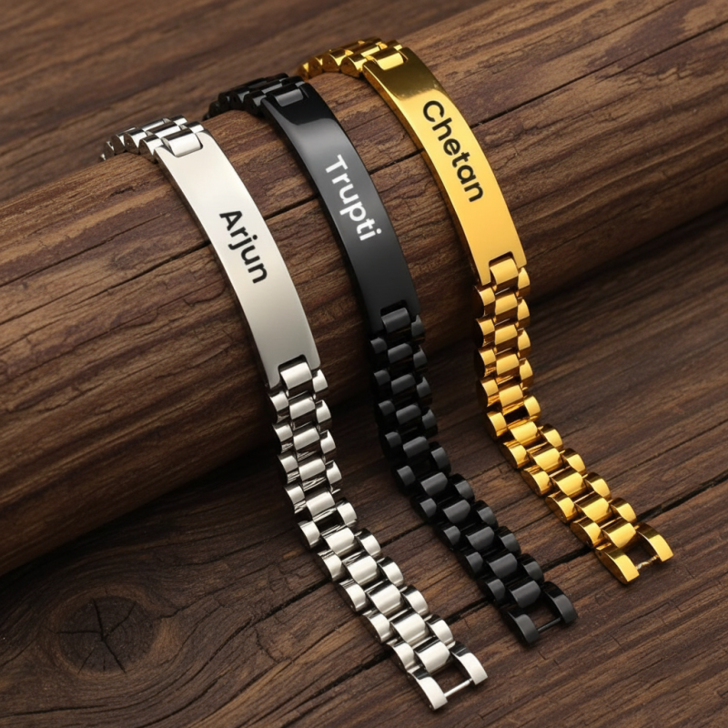 This bracelet is customizable with your choice of name or word, making it a unique piece that reflects your individuality. Available in four elegant finishes—Silver, Gold, Rose Gold, and Black—it caters to various style preferences. The bracelet's adjustable design ensures a comfortable fit for most wrist sizes. Each piece is hypoallergenic, making it suitable for sensitive skin.