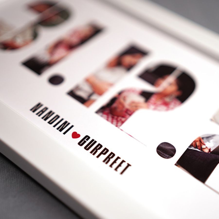 The special date and names are customizable, and the pictures are arranged inside the date, forming a perfect design together.