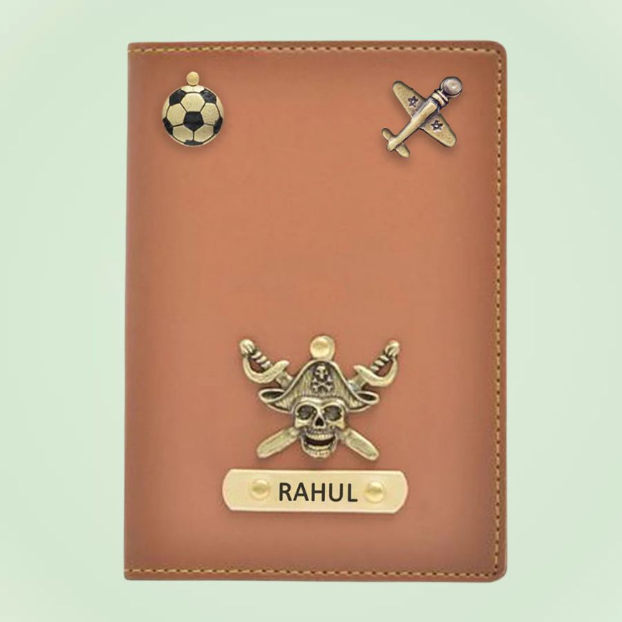 Premium Faux Leather Passport Cover with Custom Name and Metal Charms