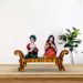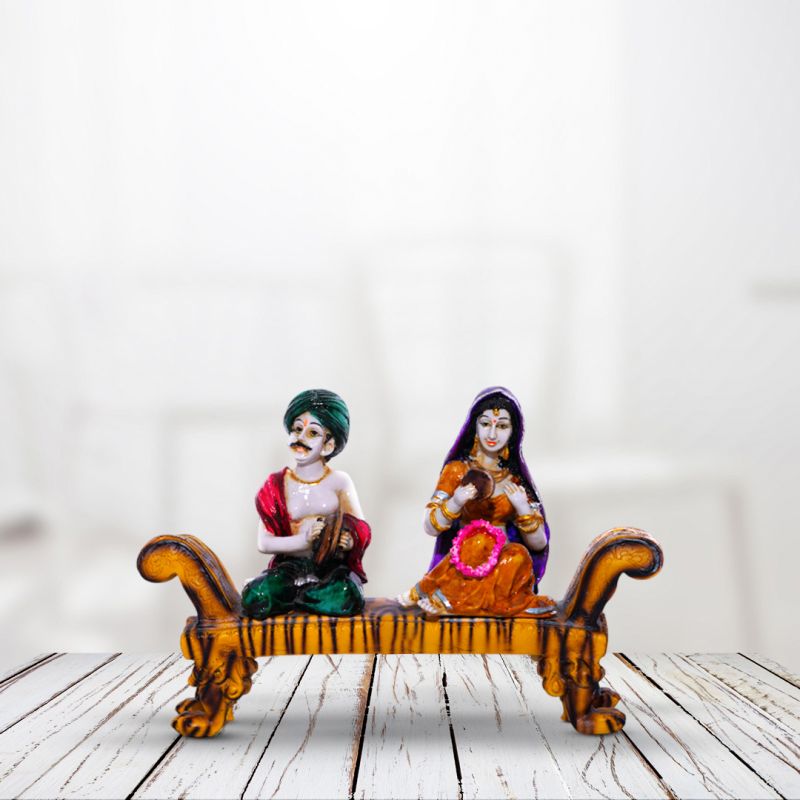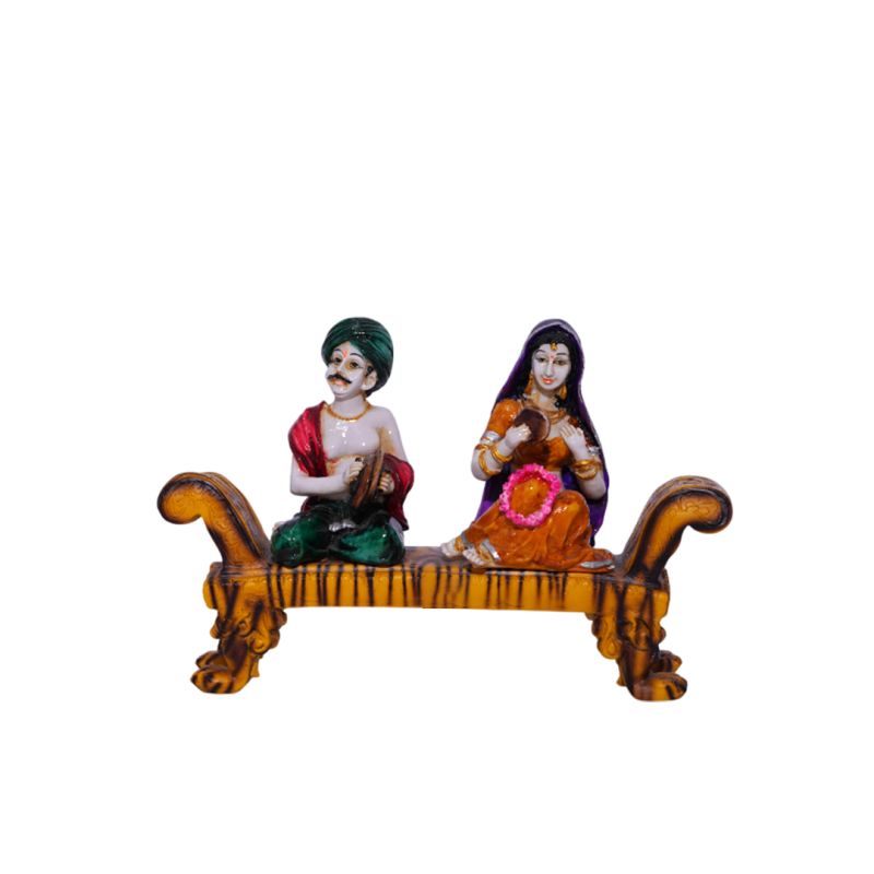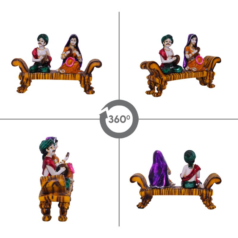 Rajasthani Couple Sitting on Cot and Playing Music Instrument Showpiece Statue for Living Room