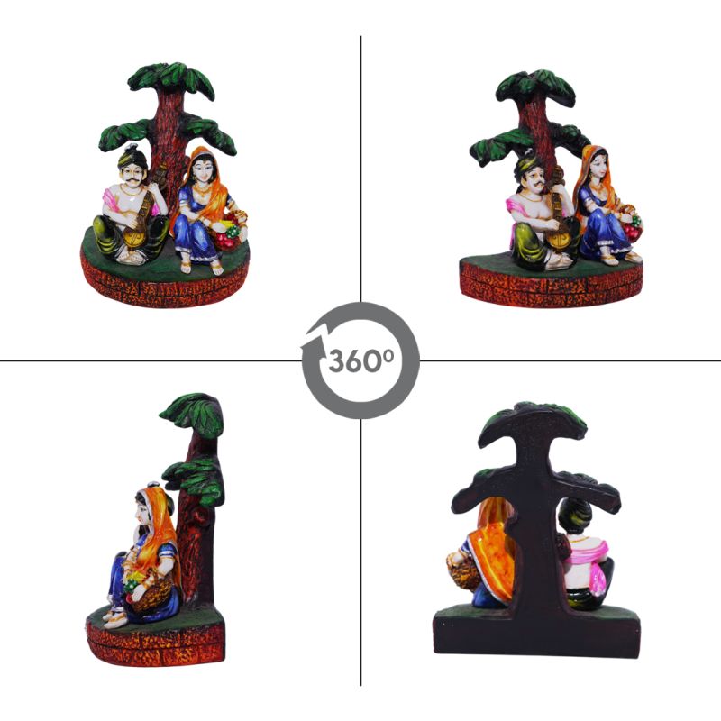 Rajasthani Couple with tree Playing Musical Instrument Statue for Home Decor