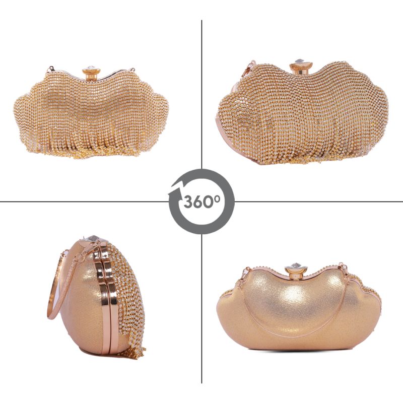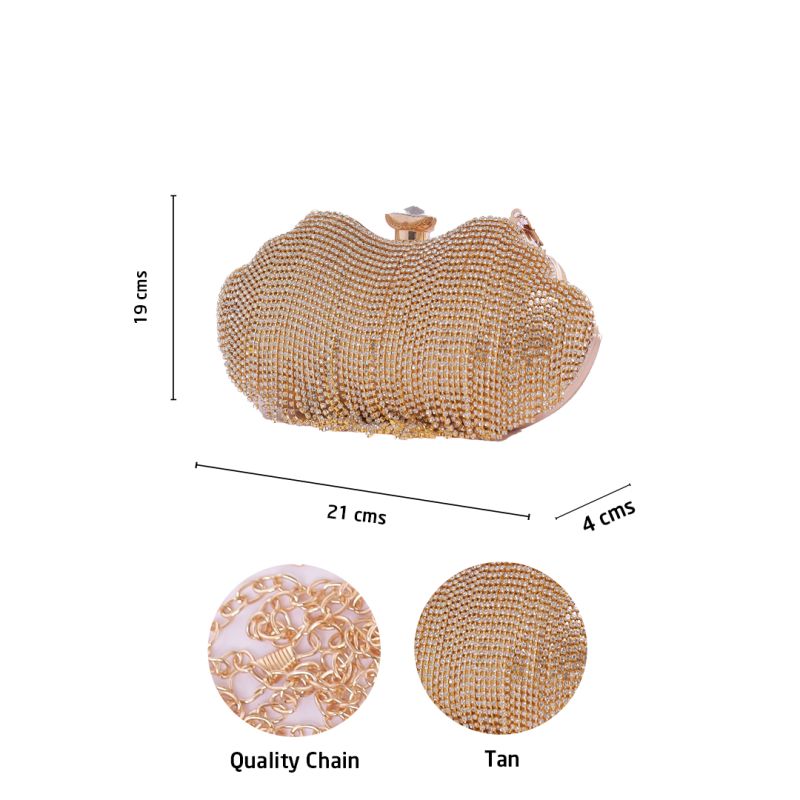 The Rhinestone Tan Gold Clutch Purse is an elegant, glamorous, and stylish accessory designed for women who love a luxurious yet versatile handbag. With dazzling rhinestone embellishments, a sophisticated tan-gold color, and a sleek design, this clutch is the perfect companion for evening events, weddings and parties.