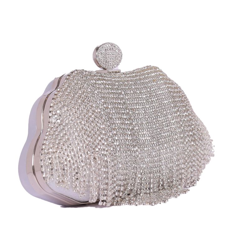Royal Intricate Crystal Tassels Silver Chalice Silver Clutch Purses for Women